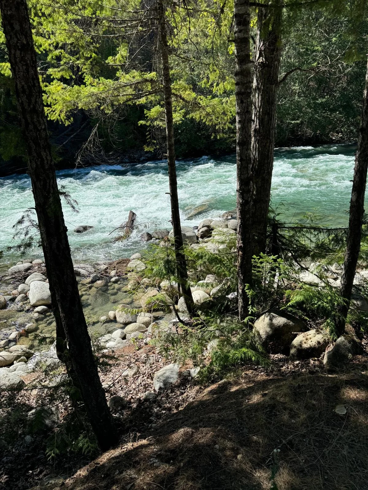We drove through a dusty winding road, surrounded by towering evergreens, and then…There it was. A small off-grid paradise tucked beside a roaring turquoise river.